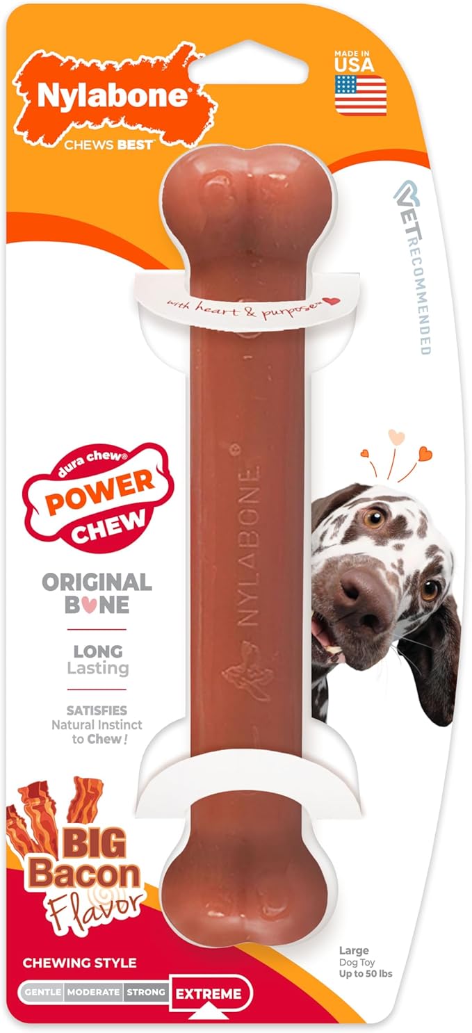 Nylabone Power Chew Classic Bone Chew Toy for Dogs, Durable Dog Toys for Aggressive Chewers, Bacon Flavor, Large/Giant - Up to 50 lbs. (1 Count)