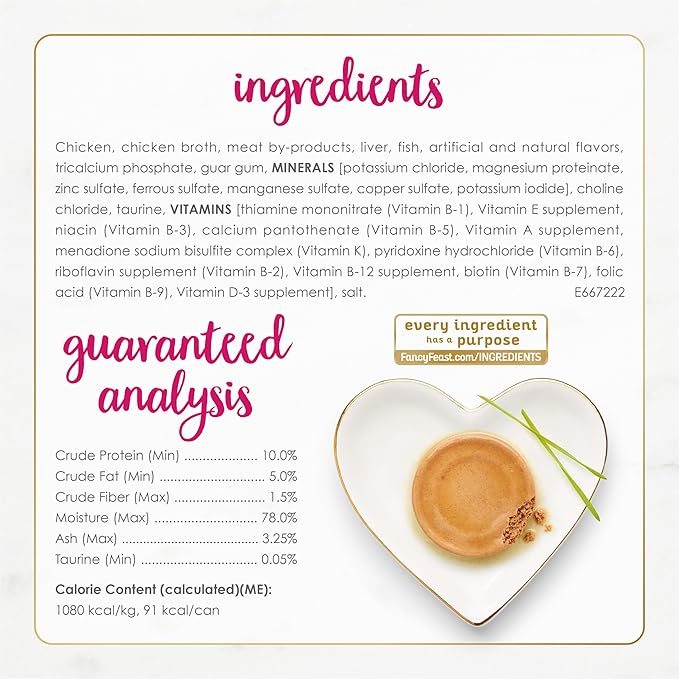 - Purina Fancy Feast pate cat food developed in partnership with our expert nutritionists to create a unique and unforgettable taste experience for your cat