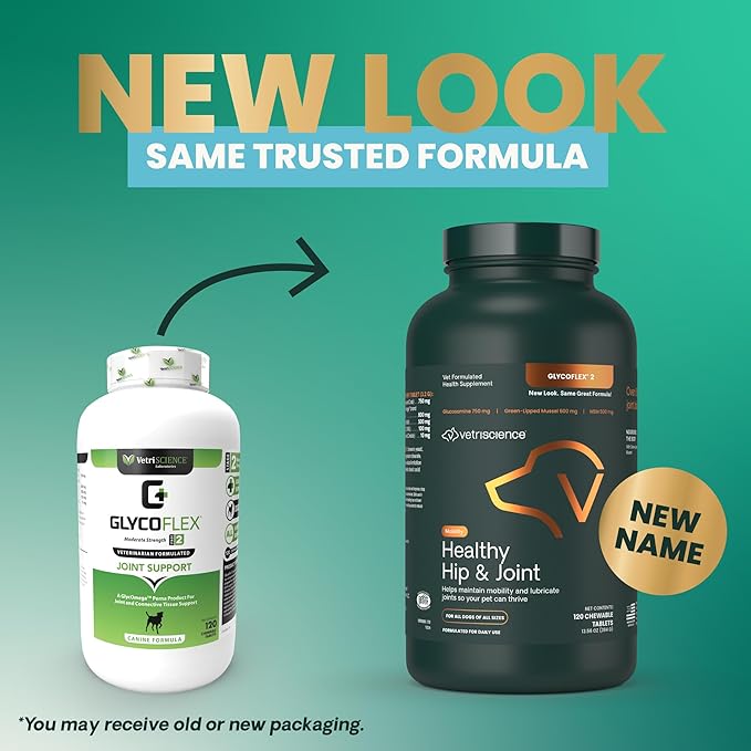 VetriScience Healthy Hip & Joint, GlycoFlex 2 for Dogs – Vet Formulated Glucosamine, MSM & Green-Lipped Mussel Tablets to Support Mobility, Flexibility & Joint Health, 120 Cnt
