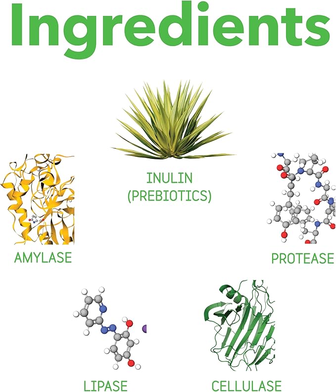 - POWERFUL DIGESTION SUPPORT FROM THE INSIDE OUT - Digestive enzymes break down food efficiently for your pet's maximum benefit. Amylase breaks down carbohydrates and starches, cellulase allows absorption of dietary fiber, protease breaks down healthy proteins, and lipase breaks down fatty acids for easy absorption. Inulin is the final ingredient that feeds healthy bacteria already living in your pet's gut. It plays a large role in healthy digestion and a healthy immune system.