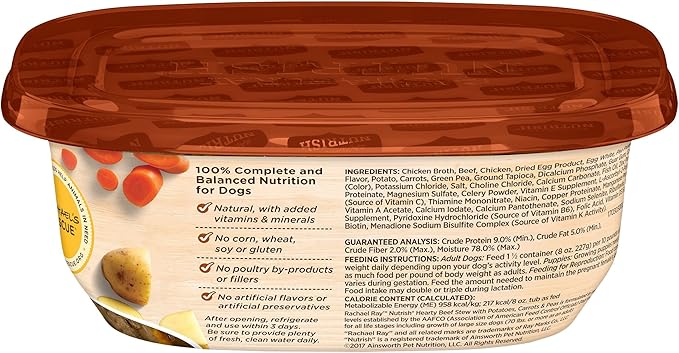 Rachael Ray Nutrish Wet Dog Food Hearty Beef Stew, 8 oz. Tub, 8 Count