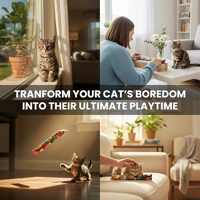 - ๐๐๐ง๐๐๐ซ๐๐๐ญ๐๐ โ ๐๐จ๐๐ญ, ๐๐๐๐ & ๐๐ฎ๐ข๐ฅ๐ญ ๐ญ๐จ ๐๐๐ฌ๐ญ: Proudly crafting cat kicker toys for indoor cats since 2012. Each kitty kick stick for cats is handmade with soft cotton, filled with safe stuffing, and packed with 100% pure USA-grown catnip. These catnip kitten toys are the best cat toys for bored cats, perfect for kicking, hugging, and playful fun. Ideal cat chew toys and kitten teething toys that keep your cat active and happy.