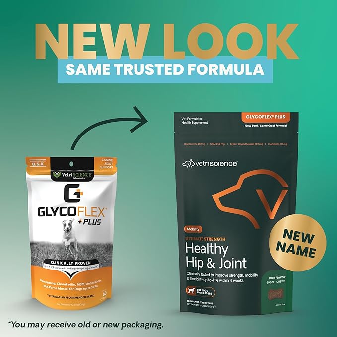 - ULTIMATE JOINT SUPPORT FOR DOGS: VetriScience Ultimate Strength Hip & Joint Supplement, GlycoFlex Plus delivers our most powerful joint health formula, combining glucosamine HCl, MSM, chondroitin sulfate, and green-lipped mussel to help maintain hip and joint comfort, flexibility, and mobility in dogs needing maximum strength support.