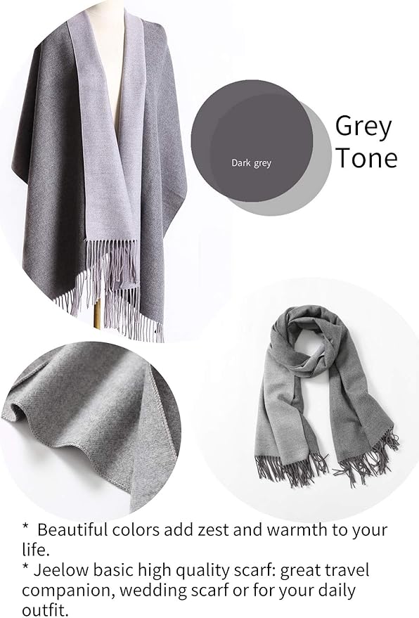 - ★ SOFT AND WARM CLASSIC SOLID COLOR WINTER SCARFS / SHAWLS / WRAPS: made of cashmere like acrylic, perfect for chilly weather or just add warmth whenever needed. 2-sided reversible design features 2 different color schemes.