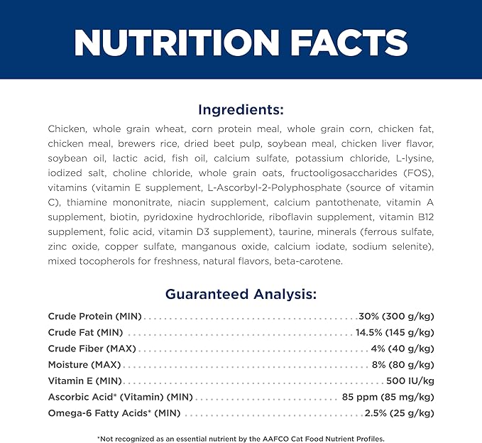 - Precise balance of key nutrients deliver the appropriate amount of energy to support ideal body weight in adult cats