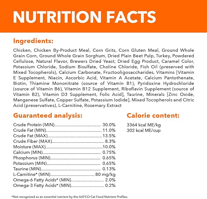 - Weight Control Cat Food: This adult dry cat food is formulated with L-carnitine to help your indoor cat burn fat and maintain a healthy metabolism so they can continue to live a happy life