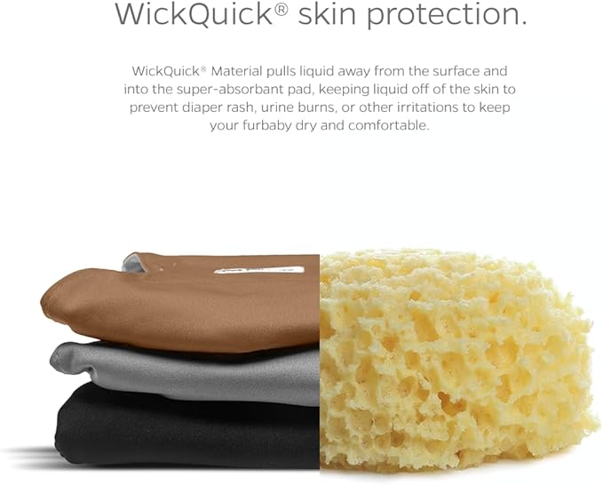- HIGHLY ABSORBENT REUSABLE DOG DIAPERS: Because we know your Great Dane 'goes' more than your Chihuahua, the diaper pad that is sewn into our belly band for dogs increases with diaper size, because bigger dogs = more liquids. WickQuick material wicks liquid from the surface & into the doggie diapers, keeping your furbaby dry & reducing urine burn, diaper rash, or irritation. Our male dog wraps also have a waterproof outer layer to prevent leaks & damage to rugs, carpets, upholstered chairs & sofa
