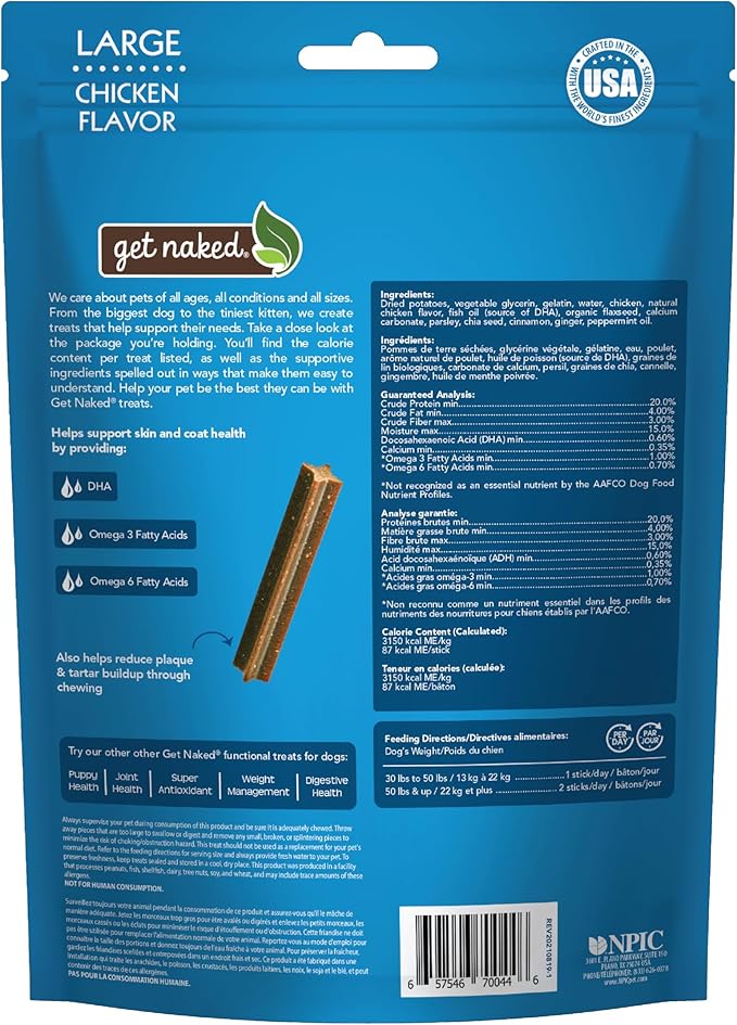 Get Naked Grain Free 1 Pouch 6.6 Oz Skin & Coat Dental Chew Sticks, Large