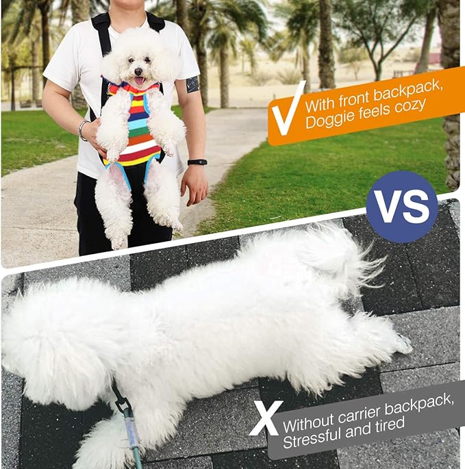 Pawaboo Pet Carrier Backpack, Adjustable Pet Front Cat Dog Carrier Backpack Travel Bag, Legs Out, Easy-Fit for Traveling Hiking Camping for Small Medium Dogs Cats Puppies, Small, Colorful Strips