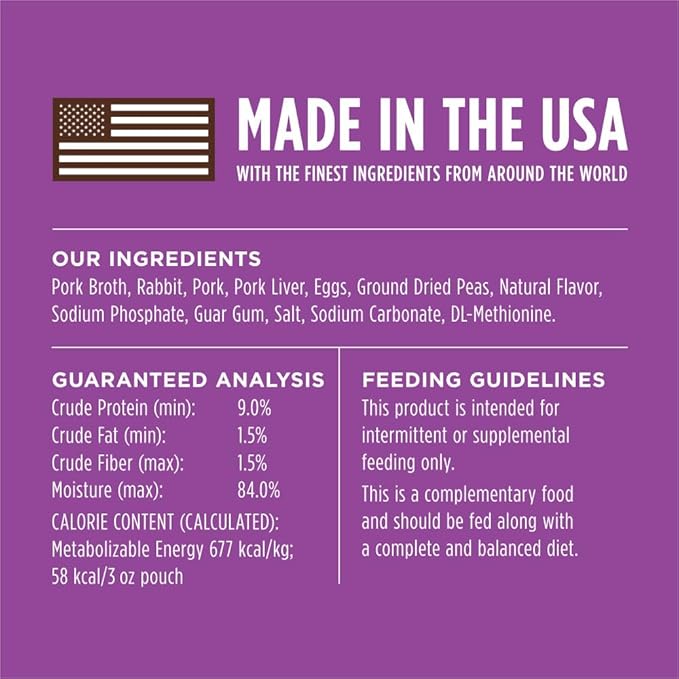 - NATURAL WET CAT FOOD TOPPER WITH SAVORY GRAVY: Grain free cuts of farm raised rabbit in a savory gravy. Made without grain, potato, corn, wheat, soy, carrageenan, artificial colors or preservatives - ingredients known to trigger food sensitivities.