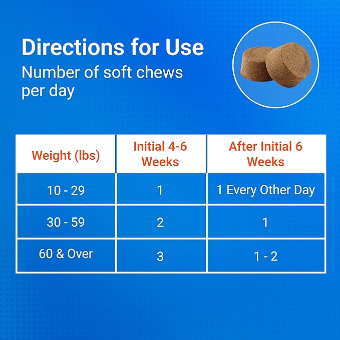 - Tasty Soft Chews for Daily Use - Cosequin comes in a tasty soft chew, making daily administration easy and convenient.