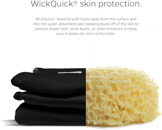 - HIGHLY ABSORBENT REUSABLE DOG DIAPERS: Because we know your Great Dane 'goes' more than your Chihuahua, the diaper pad that is sewn into our belly band for dogs increases with diaper size, because bigger dogs = more liquids. WickQuick material wicks liquid from the surface & into the doggie diapers, keeping your furbaby dry & reducing urine burn, diaper rash, or irritation. Our male dog wraps also have a waterproof outer layer to prevent leaks & damage to rugs, carpets, upholstered chairs & sofa