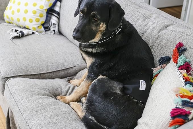 - INNOVATIVE & COMFORTABLE DOG DIAPERS MALE: The most comfortable solution to uncomfortable problems, our dog diapers male and dog wraps are made with soft and extremely wearable materials, unlike disposable diapers that can rub, itch, or have irritating textures. Our hook & loop closures are quick, easy, and fur-safe to snugly secure to your pup without pulling or catching, and our specifically-placed elastic allows for easy play, zoomies, or naps without the worry of leaks or messes.