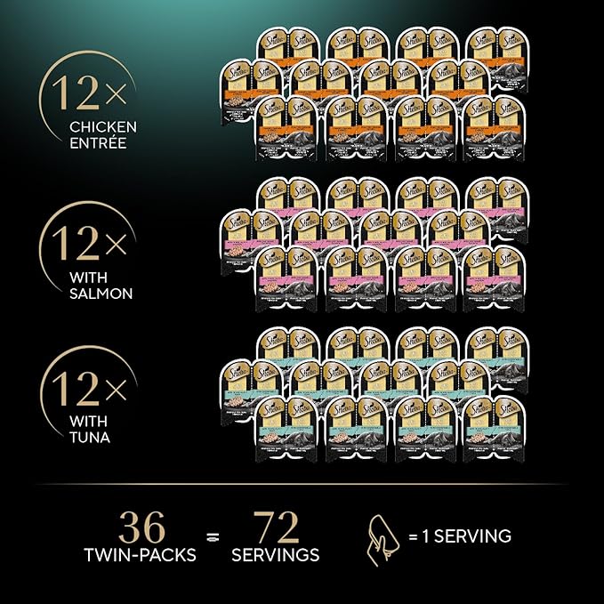 Sheba Perfect Portions Wet Cat Food Cuts in Gravy, Roasted Chicken Entree, with Sustainable Salmon, and with Sustainable Tuna, 2.6 oz. Twin-Pack Trays (18 Count, 36 Servings)