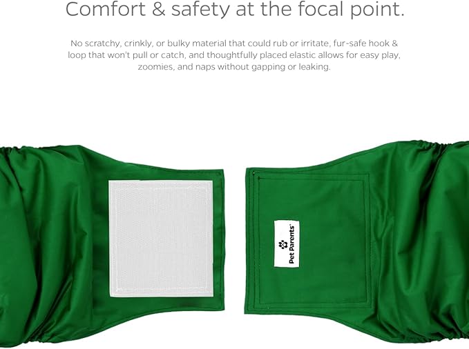 - INNOVATIVE & COMFORTABLE DOG DIAPERS MALE: The most comfortable solution to uncomfortable problems, our dog diapers male and dog wraps are made with soft and extremely wearable materials, unlike disposable diapers that can rub, itch, or have irritating textures. Our hook & loop closures are quick, easy, and fur-safe to snugly secure to your pup without pulling or catching, and our specifically-placed elastic allows for easy play, zoomies, or naps without the worry of leaks or messes.