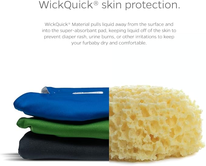 - HIGHLY ABSORBENT REUSABLE DOG DIAPERS: Because we know your Great Dane 'goes' more than your Chihuahua, the diaper pad that is sewn into our belly band for dogs increases with diaper size, because bigger dogs = more liquids. WickQuick material wicks liquid from the surface & into the doggie diapers, keeping your furbaby dry & reducing urine burn, diaper rash, or irritation. Our male dog wraps also have a waterproof outer layer to prevent leaks & damage to rugs, carpets, upholstered chairs & sofa