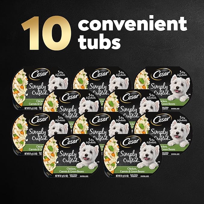 Cesar Simply Crafted Adult Wet Dog Food Meal Topper, Chicken, Carrots & Green Beans, 1.3oz. (10 Count, Pack of 1)