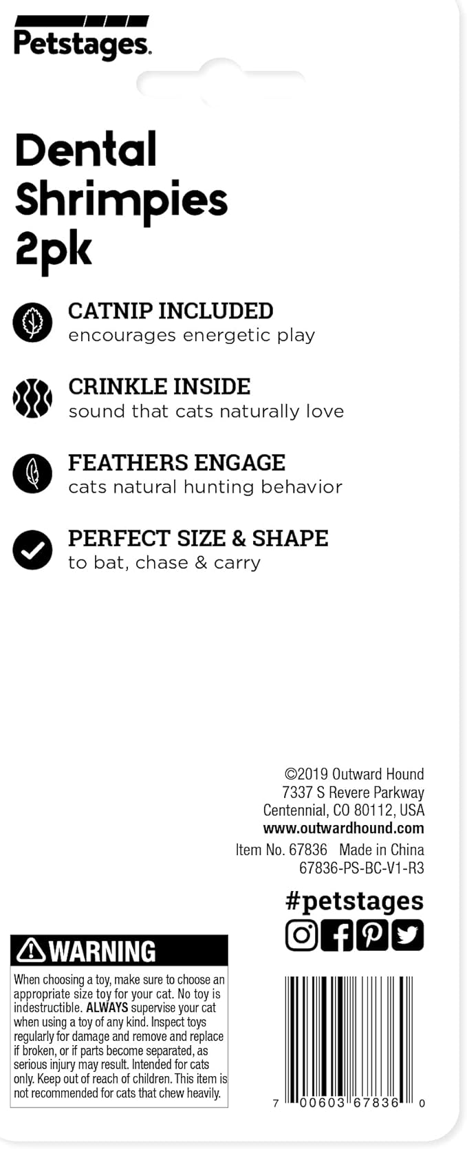 - TOSS AND BAT: Cats have an instinct to bat and pounce when they play and the Petstages Dental Shrimpies toy is lightweight for kitty to swat at. Perfect for tossing to engage her playful pounce