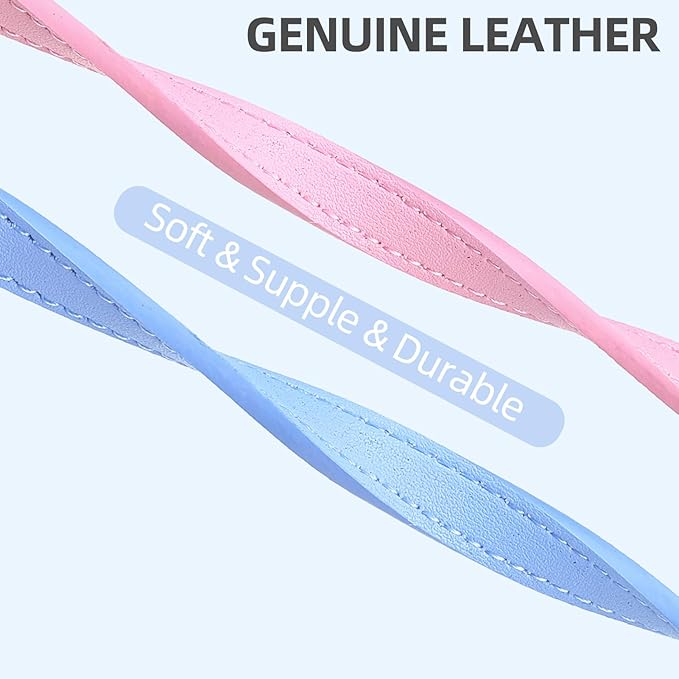 PUPTECK 2 PCS Soft Genuine Leather Cat Kitten Collar with Bells Adjustable for Girl Boy Cats Puppy - Pink, Blue