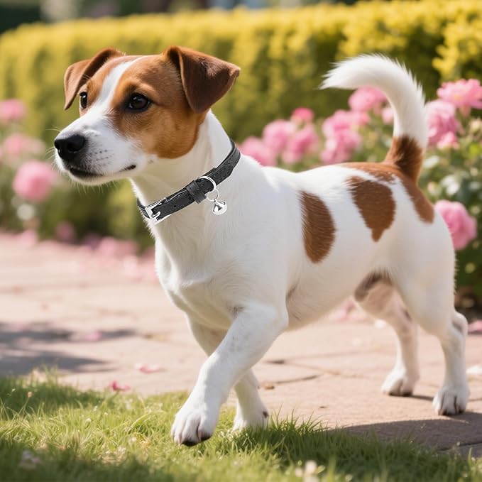 PUPTECK 2 PCS Soft Genuine Leather Cat Kitten Collar with Bells Adjustable for Girl Boy Cats Puppy - Black, Khaki