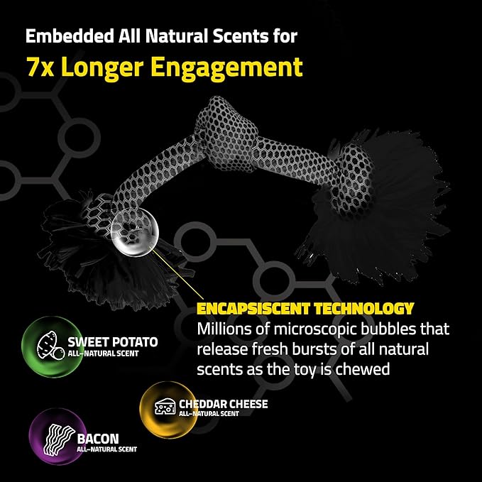 - Easy To Clean & Non Toxic Dog Toys: Dirt and sand trapped on the surface of a toy can grind down your pup’s teeth, that's why we make all our interactive dog toys easy to clean. With our Encapsiscent Technology, the all-natural scent is embedded throughout the material of each toy, so no need to worry about washing away the scent your pup loves. Just toss the rope toy in the washing machine and tumble dry with low heat
