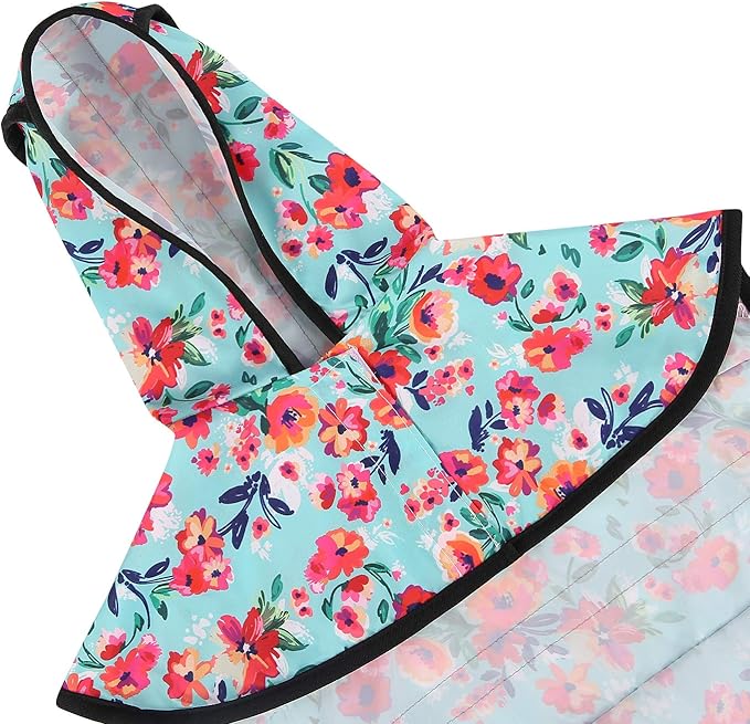 HDE Dog Raincoat Jacket Reflective Adjustable Hooded Pet Poncho Rain Coat with Leash Hole for Small to X-Large Dogs Turquoise - L