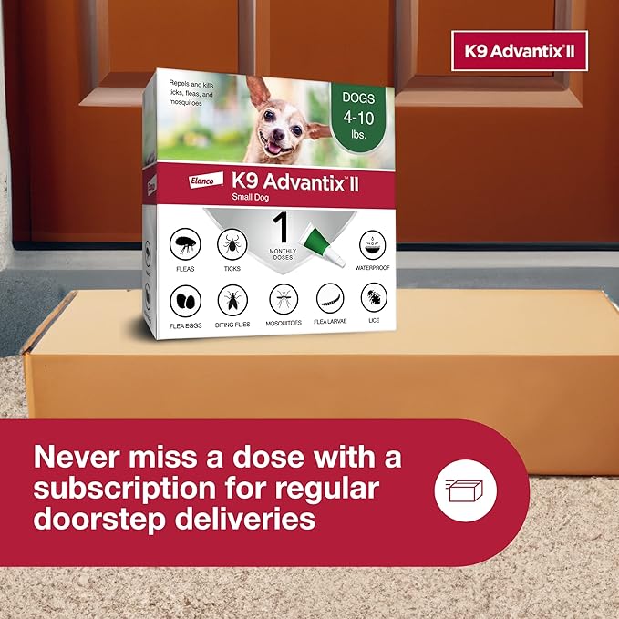 - K9 Advantix II Small Dog 30-day treatment & prevention protects dogs 4-10 lbs. from fleas, ticks, mosquitoes, biting flies and lice