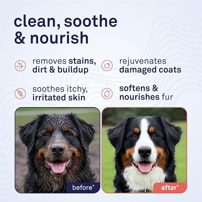 - Gentle Formula: Mild surfactants remove dirt and odors without stripping natural oils, making it suitable for regular use on dogs with sensitive skin.