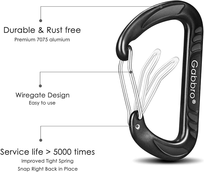 Gabbro Carabiner Clips Heavy Duty, | Wiregate Snap, Screw Locking, Aluminum, Lightweight Caribeener | for Hammock, Hiking, Camping, Water Bottle, Dog Leash Harness, Keychains