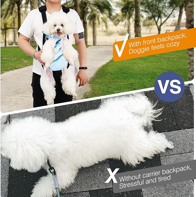 - Two Ways of Wearing: A hands-free pet carrier can be worn on your front side or your backside if you like, it keeps you closer and increases pet's sense of security when you carry your cat or dog around. Meanwhile, the thickened sponge pad helps to relieve the burden of your shoulder.