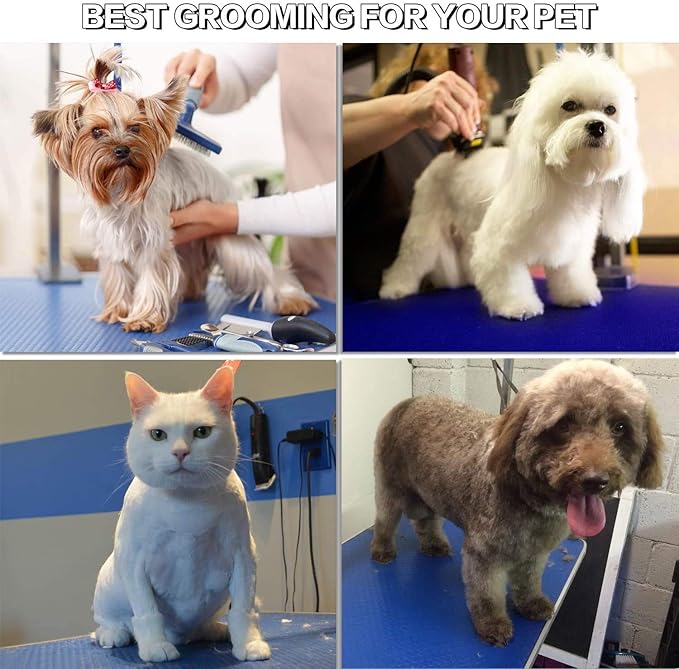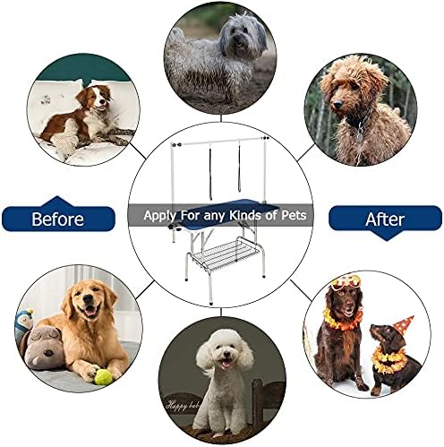 - 🐶Stable pet beauty table: There are four pieces of metal bracings for connecting and supporting the tabletop and table legs firmly. The metal connecting part forms a triangle shape to provide much stability for the table. The max load-bearing capacity of the table is 330lb. Table size: L36'' x W24''.