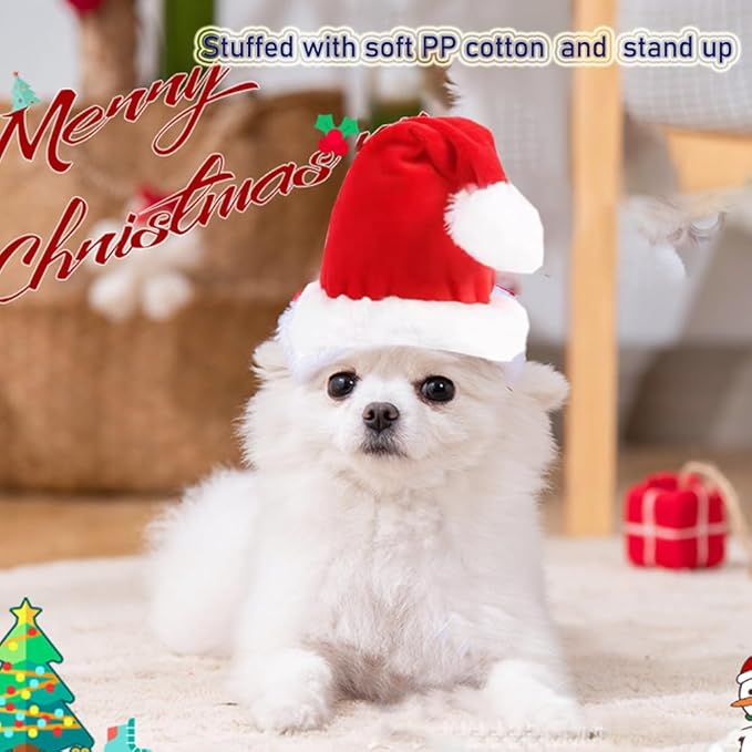 - [ Premium Material ]:Our Christmas Dog hats for small dog is made of soft short plush and stuffed PP cotton which is warm, comfortable and no any burden for your pet to wear the red Christmas kitten outfit