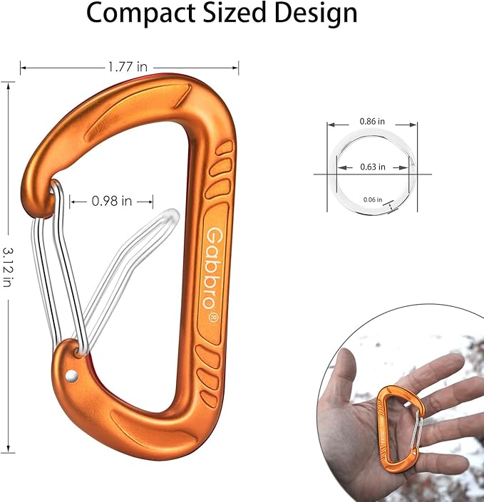 Gabbro Carabiner Clips Heavy Duty, | Wiregate Snap, Screw Locking, Aluminum, Lightweight Caribeener | for Hammock, Hiking, Camping, Water Bottle, Dog Leash Harness, Keychains