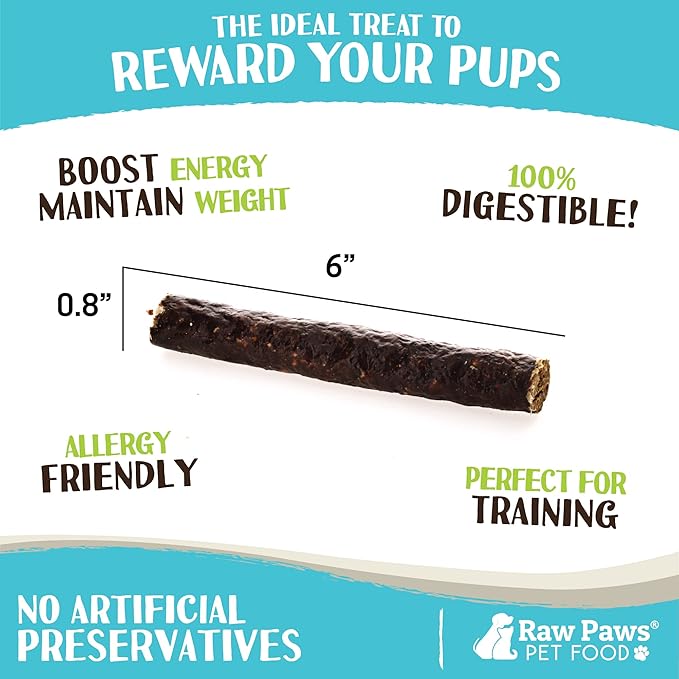 - REAL MEAT VENISON JERKY DOG TREATS: Raw Paws venison jerky dog treats are 100% natural, containing no salt, sugar, artificial preservatives, additives or fillers. Our chewy, all natural dog treats, featuring venison as the #1 ingredient, are sourced from free range venison ethically raised on family farms. We partner with only responsible, ethical sources to ensure your dogs' jerky treats are a fresh, high-quality, and fully digestible treat your pup will love!