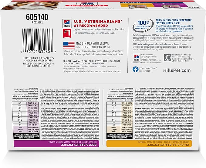 Hill's Science Diet Adult 7+, Senior Adult 7+ Premium Nutrition, Wet Dog Food, Variety Pack: Chicken & Barley; Beef & Barley Loaf, 13 oz Can Variety Pack, Case of 12