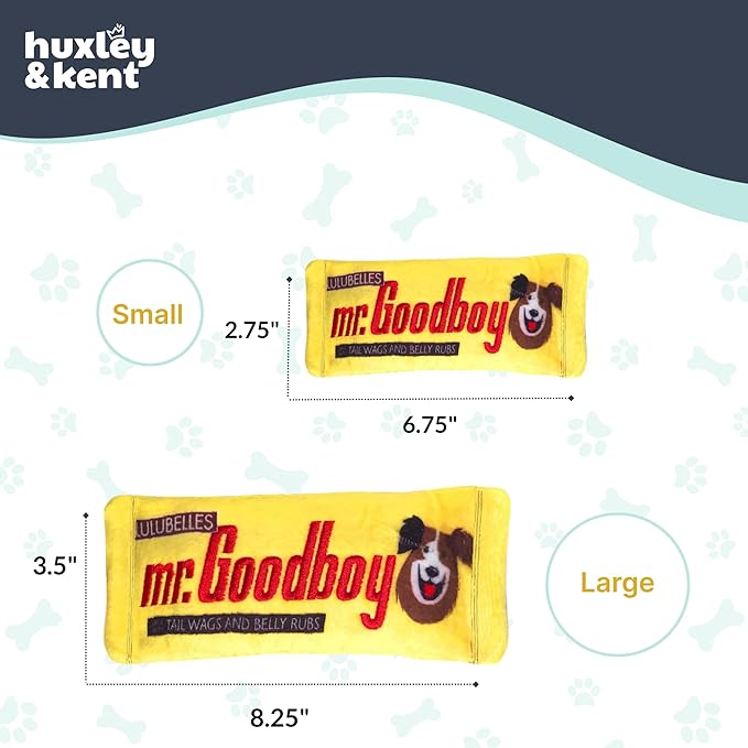 Huxley & Kent Funny Dog Toy w/Squeaker – Power Plush Squeaky Dog Toys for Small, Medium & Large Dogs – Soft Stuffed Animal for Indoor Play & Fetch - Mr Goodboy, Small