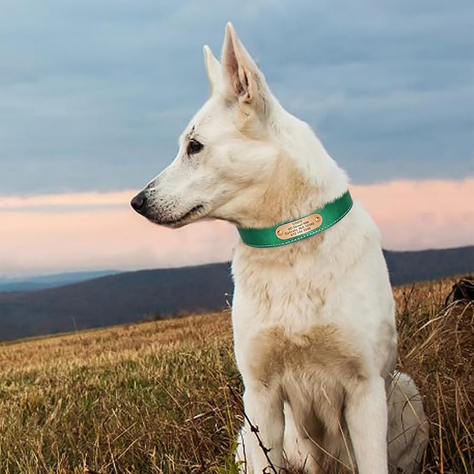 Didog Genuine Leather Dog Collars with Engraved Nameplate, Personalized Soft Leather Dog Collar with Custom ID Tag, Brown/Green/Red for Medium Large Dogs (L,Green)