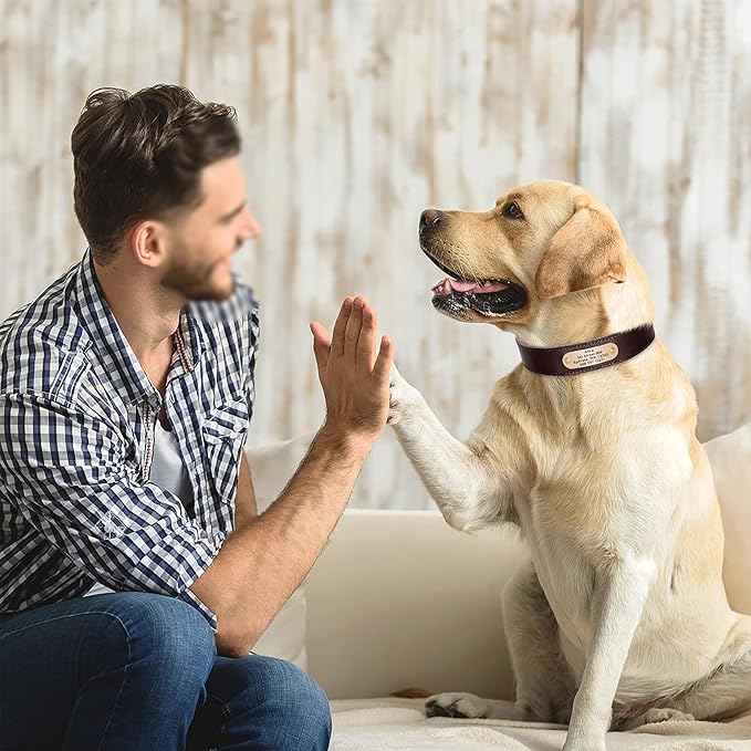 Didog Genuine Leather Dog Collars with Engraved Nameplate, Personalized Soft Leather Dog Collar with Custom ID Tag, Brown/Green/Red for Medium Large Dogs (L,Brown)