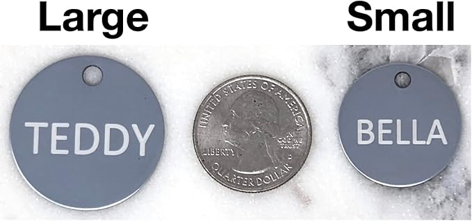 - SHAPES AND SIZES: Our custom pet identification tags are available in large bone, small bone, large paw print, large round or circle, small round or circle, and cat face or head. Tags may have slight variation in shape due to different manufacturing processes (i.e. for the heart tag, the hole to put the ring to attach to the collar my be at the top of the tag above the heart or at the top of the heart).