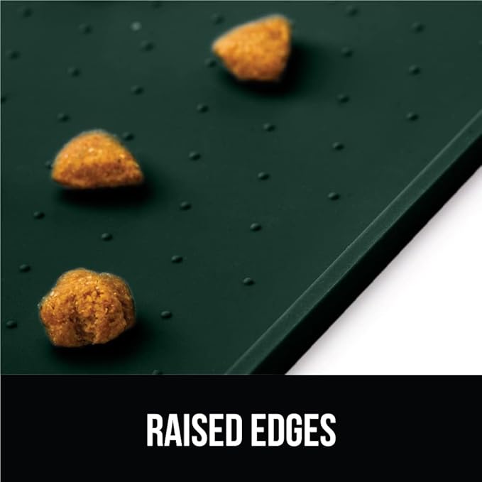 GORILLA GRIP 100% Waterproof Raised Edge BPA Free Silicone Pet Feeding Mat, Dog Cat Food Mats Contain Spills Protects Floors, Placemats for Cats and Dogs Water Bowl, Pets Accessories 18.5x11.5 Green