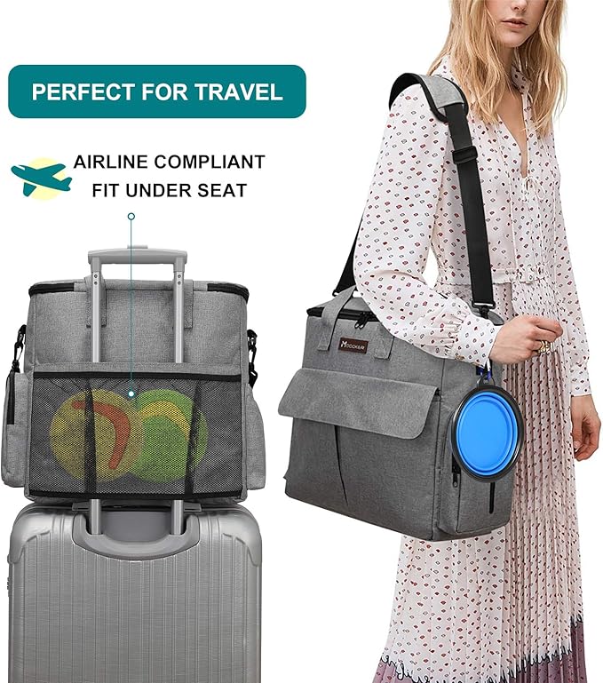 Modoker Dog Travel Bag, Weekend Pet Travel Set for Dog and Cat, Airline Approved Tote Organizer with Multi-Function Pockets, 2 Food Storage Containers, 2 Collapsible Bowls, 1 Feeding Mat (Grey)