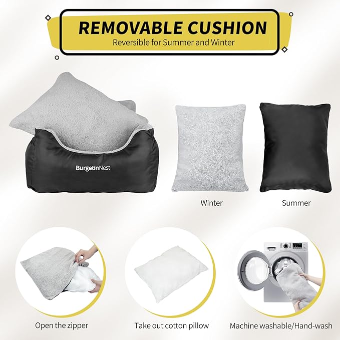 - Sturdy Oxford Fabric : BurgeonNest dog booster car seat is made of odorless, sturdy oxford fabric with thicker coating, and reinforced with double stitches, there is no more stitching tore, ripped in the washer. And dog bed for car is very comfy and fluffy , good for your pet when lying on it, good for your pet's joints.