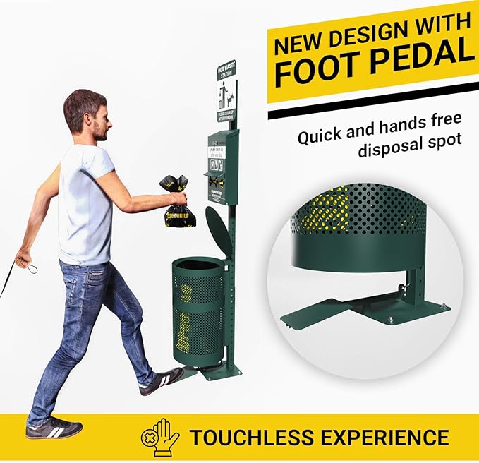 Pet Waste Station with Pedal - Includes 600 Roll Bags & 50 Can Liners - Glow in the Dark Dog Waste Station with Dog Poop Sign, Bag Dispenser, Hand Sanitizer Bottle & Outdoor Trash Can with Lid