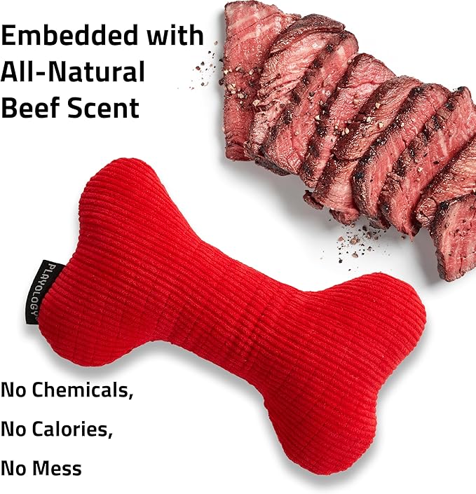 Playology Dog Toys | Plush Squeaky Bone Chew Toy for Dogs | Jumbo Beef Scented Toy - Easy to Clean and Made from Non Toxic Materials