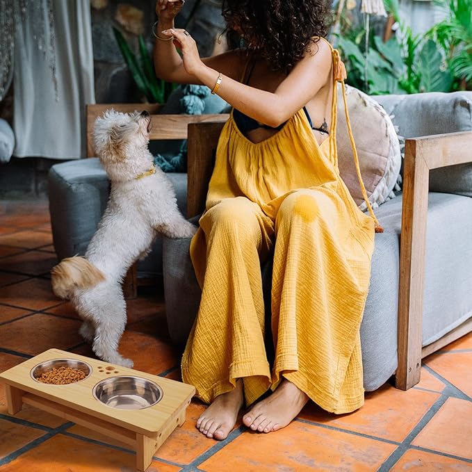 - HIGH QUALITY AND DURABLE:The raised dog feeder is made of tough bamboo, durable, smooth surface after multiple polishing,easy to clean.Three colors to choose from, there is always a suitable for your home.