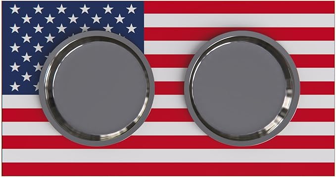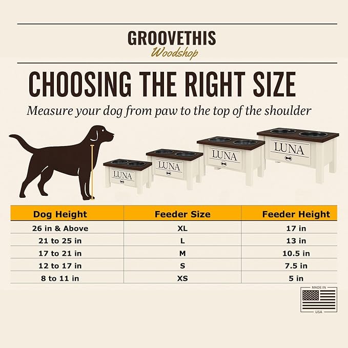 GrooveThis Woodshop - Personalized Elevated Dog Bowl Stand for Large, Medium, Small, X-Small Dogs - Stainless Steel Food and Water Bowls - Raised Dog Dish with Internal Storage (Medium, Flag Design)