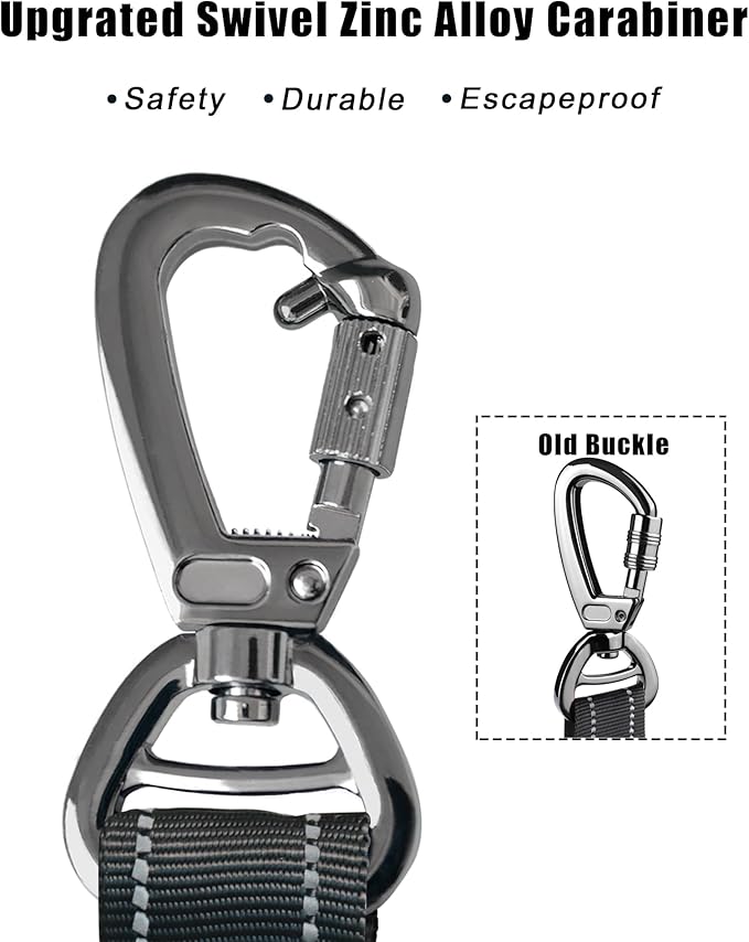 - 360°Rotating Locking Clasp: The heavy duty dog leash is fitted with a lightweight and super durable climbing carabiner which is made of aviation aluminum alloy with a Max Force Tension of 373 KG, the same material used and trusted by climbers. Professional Swivel clasp prevents the leash from twisting and the dog getting tangled, allowing your dog to get enough freedom.