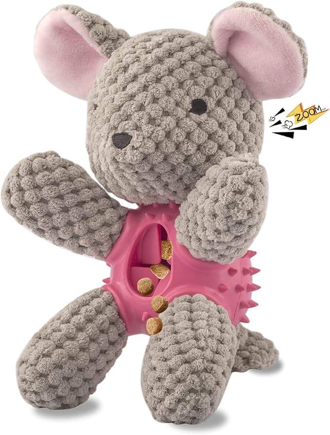 - Squeaky dog toys will create 2 loud crisp sounds when you squeeze it. Its ears were made of crinkle paper and its has 2 built-in squeakers in the abdomen and head. It creats fun sounds during chewing, making chewing more exciting for dogs
