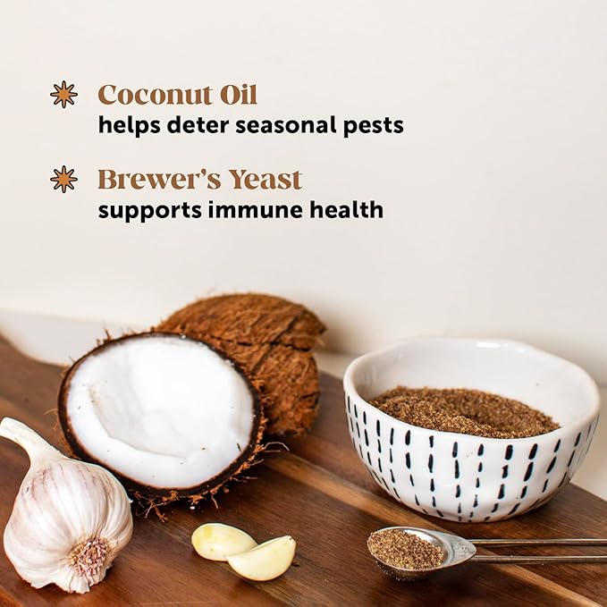 - BUILDING BUG RESISTANCE - Specifically formulated levels of natural ingredients like coconut oil, garlic, B vitamins & omegas help build up a daily long-term internal resistance to pests. Oh, and did we mention that that 9 out of 10 dogs love the taste.* *based on a 3rd party feeding study. Individual results may vary.