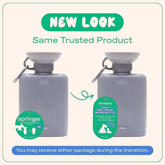 Springer by Springland Dog Water Bottle | Portable Travel Water Bottle Dispenser for Dogs | Dog Gift Seen on Oprah's Favorite Things, Shark Tank | Leak-Proof Bottles | BPA-Free 44oz Gray